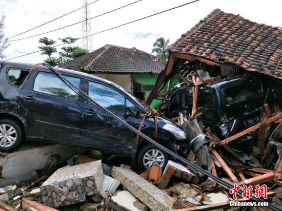 在一个叫Sukarame的村庄,距海边近百米范围内的房屋或完全倒塌或严重损毁,电线杆变压器倒地,被海浪冲毁的各种汽车或卡在树间或趴上残墙,一路所见满目疮痍。