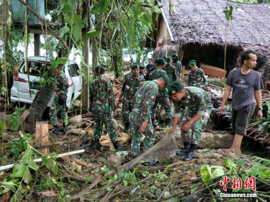 印尼军队一到现场即投入倒塌房屋废墟的搜救,在一些地方还动用了挖掘机等重型机械。印尼国家电网的工人一大早就忙着重竖电线杆架设线路,一些灾民则在自家被损毁的房屋无奈地找寻些仍可使用的物品。
