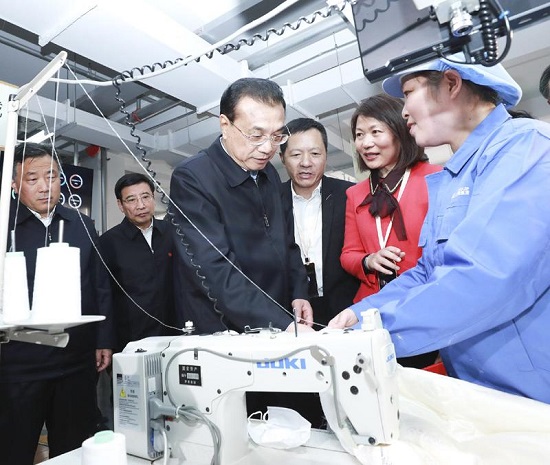 图为11月29日,李克强总理在江苏南通考察罗莱公司。