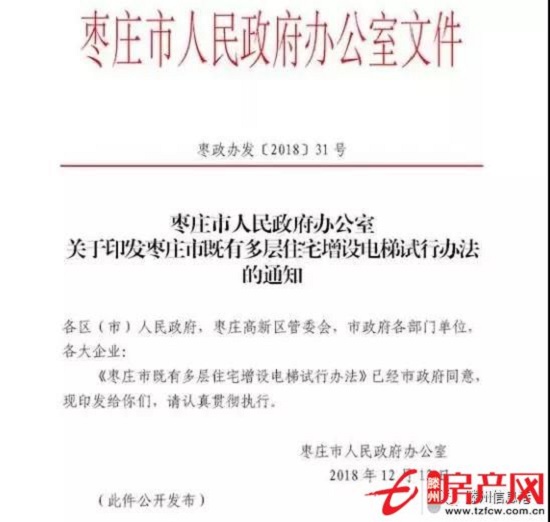 为了完善既有多层住宅的使用功能,方便居民生活,推进居家养老事业发展,近日,枣庄市政府办公室在其官方网站上公布了《关于印发枣庄市既有多层住宅增设电梯试行办法的通知》。今后枣庄市多层住宅增设电梯将有法可依,增设电梯应当经三分之二以上的业主书面同意。