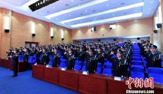 中国公安边防、警卫部队举行集体换装和入警宣誓仪式
