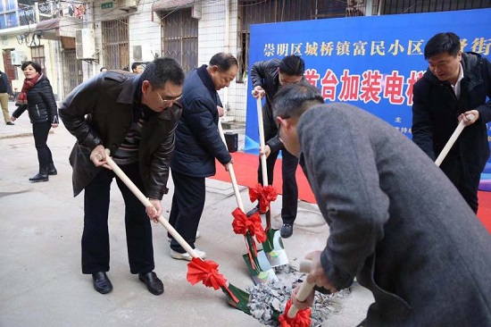 12月28日上午9时许,兴贤街35号楼下人头攒动。崇明首个既有多层住宅电梯加装工程项目在此正式启动建设,标志着老旧小区加装电梯在崇实现“破冰”,将对“全区推进”起到重要的示范引领作用。35号楼居民有望于2019年“五一”前用上电梯。