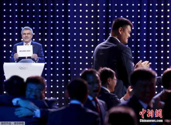 资料图:当地时间2015年7月31日,马来西亚吉隆坡,国际奥委会第128次全会投票决定,北京成为2022年冬季奥运会举办城市。这也使得北京也成为第一个承办过夏奥和冬奥的城市。图为姚明鼓掌庆祝北京成功申办2022年冬奥会。