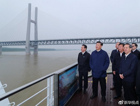 2018年4月,习近平深入湖北宜昌市和荆州市、湖南岳阳市以及三峡坝区等地,实地了解长江经济带发展战略实施情况。