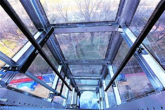 顺着香港中路,记者远远地就看到一座透明的“观光电梯”竖立在颐景园小区3号楼一单元墙外,电梯采用玻璃和不锈钢构成,外观时尚漂亮,与整个楼的风格和谐。走近一看,电梯外立面已经安装完毕,轿厢已经放入电梯内,3-4楼和5-6楼之间的连廊也已经安装好,与楼梯相连。来到楼上,3-4楼和5-6楼之间的窗户已经拆除,墙体与连廊连接在一起。