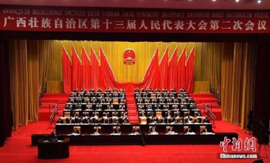 广西壮族自治区第十三届人民代表大会第二次会议在南宁开幕。中新社记者俞靖摄