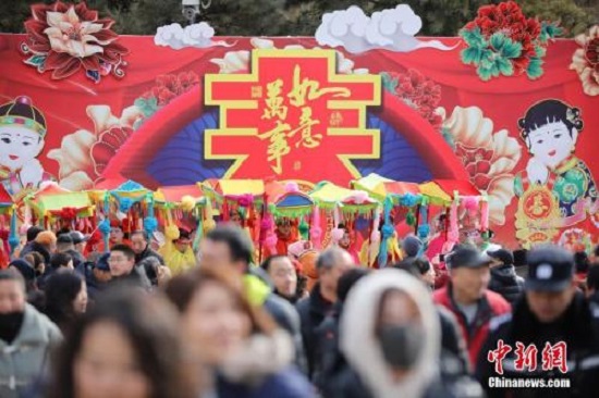 在北京,庙会文化活动共接待310.6万人。其中,有着30多年历史的北京地坛、龙潭这两大传统庙会,日均接待游客达28万人次。