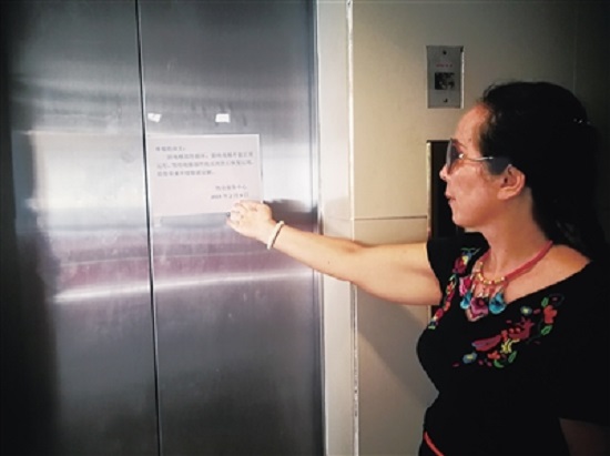 南国都市报热线966123讯(记者王天宇文/图)自从2月6日大年初二,三亚市崖州区南山花园小区5号楼二单元唯一一部电梯因钢丝绳问题停运,住户们被爬楼梯给折腾坏了。“电梯停了这么久,就是不见人来修。”2月24日上午,住户们说。