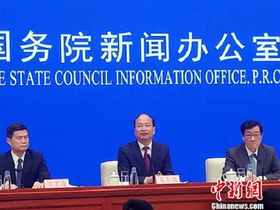 新任证监会主席易会满首场新闻发布会现场。夏宾摄