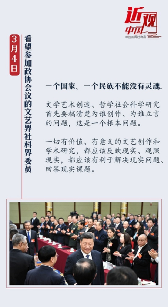 参加文艺界社科界委员联组会议时,习近平谈到“为谁创作、为谁立言”这一根本性问题,表示要“着眼群众需要解疑释惑、阐明道理,把学问写进群众心坎里”。