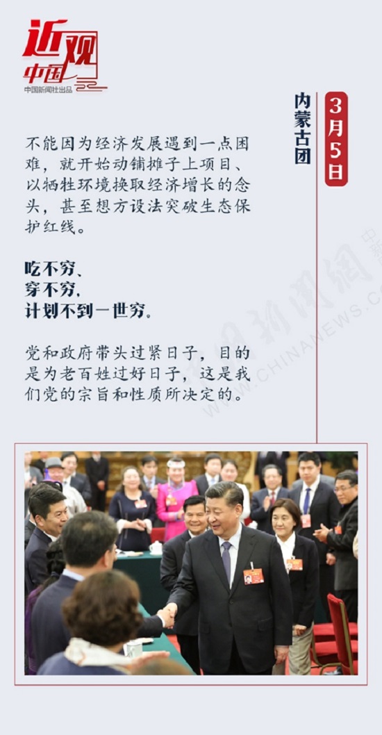 在内蒙古团,他表示,“保持经济持续健康发展和社会大局稳定的任务十分繁重”。并特别指出,“艰苦奋斗、勤俭节约,不仅是我们一路走来、发展壮大的重要保证,也是我们继往开来、再创辉煌的重要保证”。