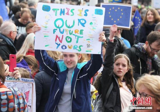 资料图:伦敦市中心举行大规模呼吁举行“第二次脱欧公投”的示威游行。中新社记者张平摄
