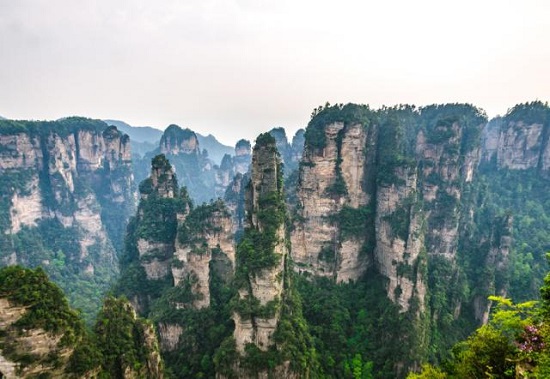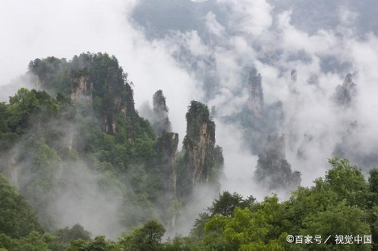 张家界武陵源风景区内自然景观非常丰富,其中这里的石英砂岩峰林为世界罕见,仅在这里就拥有3000多座石英砂岩山峰,山峰造型各异且奇特,因此也有着“奇峰三千”的美誉,特别是在阴雨天或雨过天晴后,山峰之间到处弥漫着云雾景观,犹如仙境。