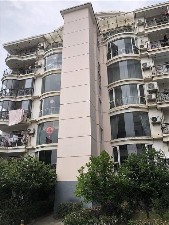 图为常青花园12小区13栋1单元“外挂式”电梯外墙。
