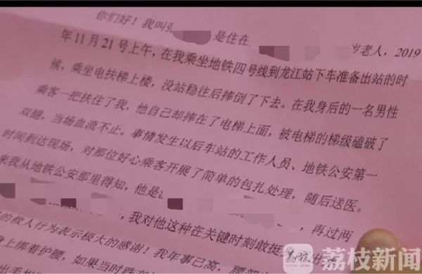 事情过去了这么久,张女士一直记挂着受伤的小伙。正在外地女儿家的张女士几天前专门写了一封感谢信寄给了地铁公安,希望一并转达她对出手相救的小伙还有热心帮助的好市民的谢意。