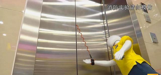 曾经有一个关于安全绳的消防实验。将"遛娃神器"的一头系在消防员的手腕上,一头系在假人手腕上,然后消防员进到电梯里,模拟孩子来不及进入电梯的场景。结果电梯的门并未感应到安全绳的存在,正常关闭运行。