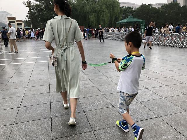 为了防止孩子走丢,很多家庭买了一种名为“遛娃神器”的商品,这种神器也叫儿童安全绳。通过一根可伸缩的牵引绳,将孩子的手与大人的手连在一起。能让孩子自由行动。