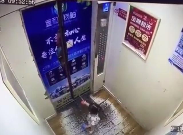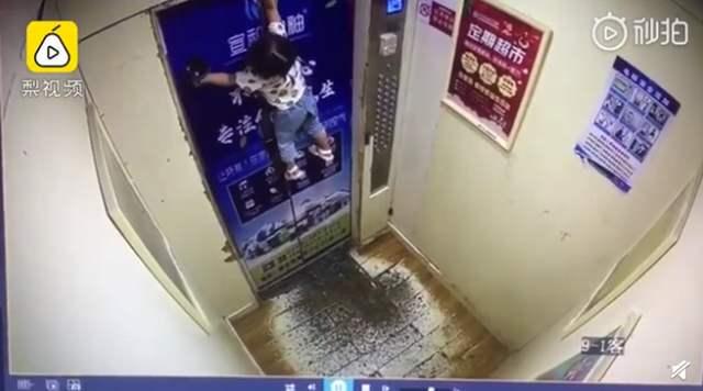 随后,电梯突然启动下行,女童随之被高高吊起,悬空挂在门上近2分钟,电梯启动上行,女童被摔落在地。