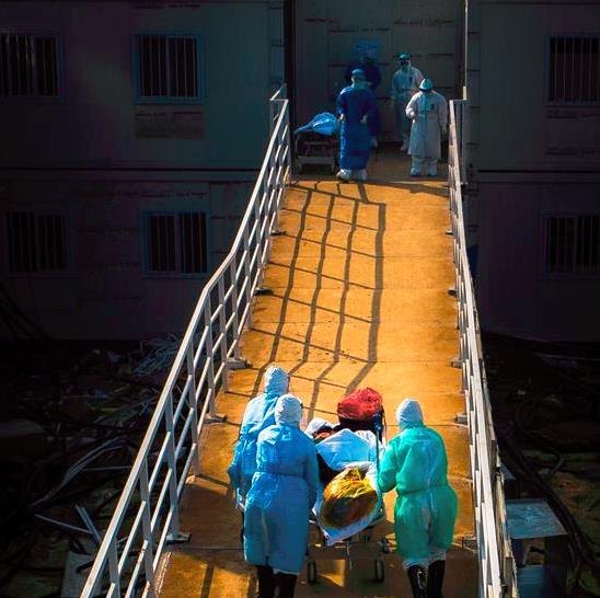 医护人员走向武汉火神山医院病房(2月4日摄)。新华社记者肖艺九摄
