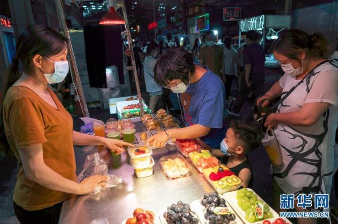 6月1日,市民在武汉保成路夜市消费休闲。新华社记者熊琦摄