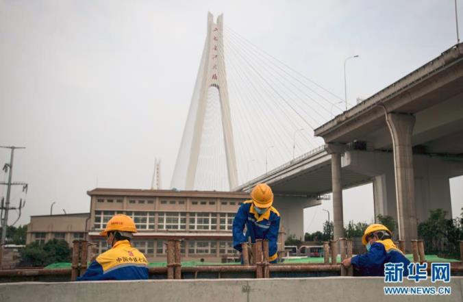4月30日,来自中铁七局的建设者在武汉武九北综合管廊工程施工现场作业。新华社记者肖艺九摄