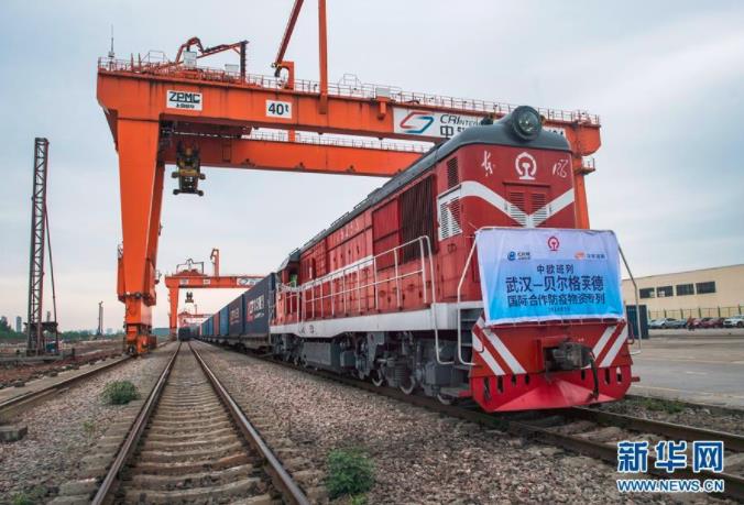 5月9日,开往塞尔维亚贝尔格莱德的中欧班列(武汉)准备从吴家山站驶出。新华社记者肖艺九摄