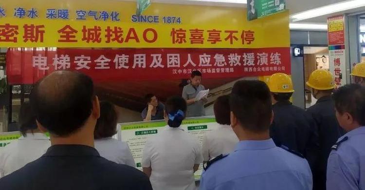 按照“安全生产月”活动方案,近日,汉台区市场监管局在“和谐春天”小区和汉中百嘉汇商业广场组织开展了电梯应急救援演练活动。