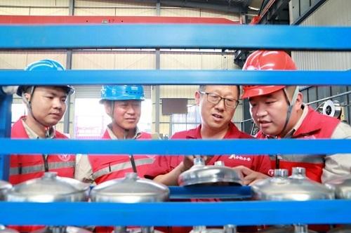 6月4日,在合肥丰华汽车零部件有限公司生产车间,一台自动化焊接设备正在加工铝合金储气筒,刺眼的白光划过金属表面,呈现鱼鳞状的淡蓝色波纹。从流水线下来,一排排产品整齐码放,技术人员认真地检查产品质量,确认合格后转运到下一步工序。