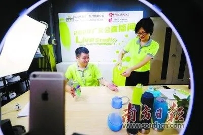 广交会上“云”,网上直播间成为了粤企奋斗的“主战场”。图为珠海市休普设计制作有限公司直播间。南方日报记者关铭荣摄