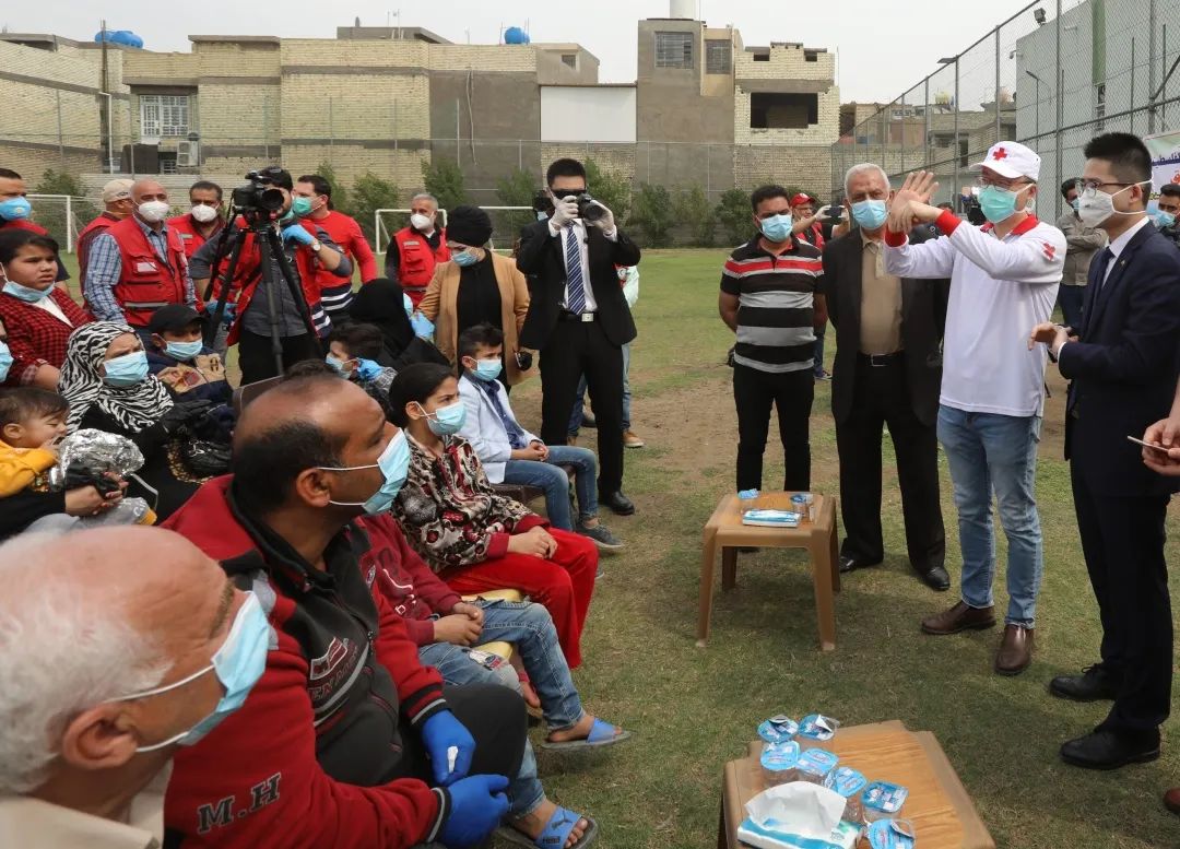 3月16日,在伊拉克巴格达,中国医疗专家展示科学的洗手方法。新华社发(哈利勒·达伍德摄)