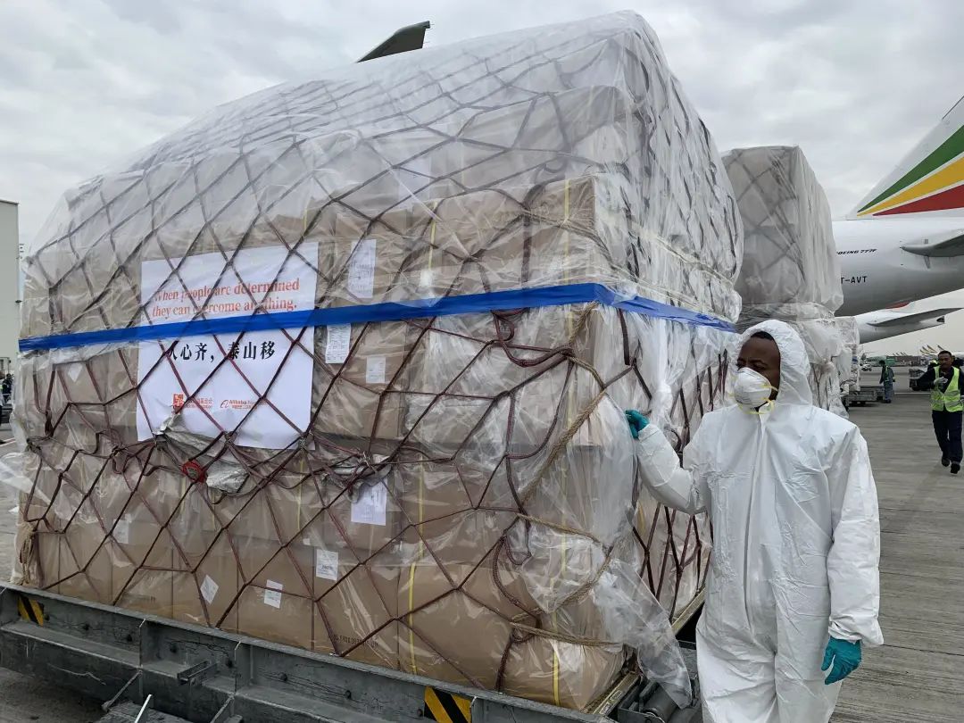 3月22日,用于支援非洲54国抗击疫情的中国援助物资运抵埃塞俄比亚首都亚的斯亚贝巴国际机场。新华社记者王守宝摄