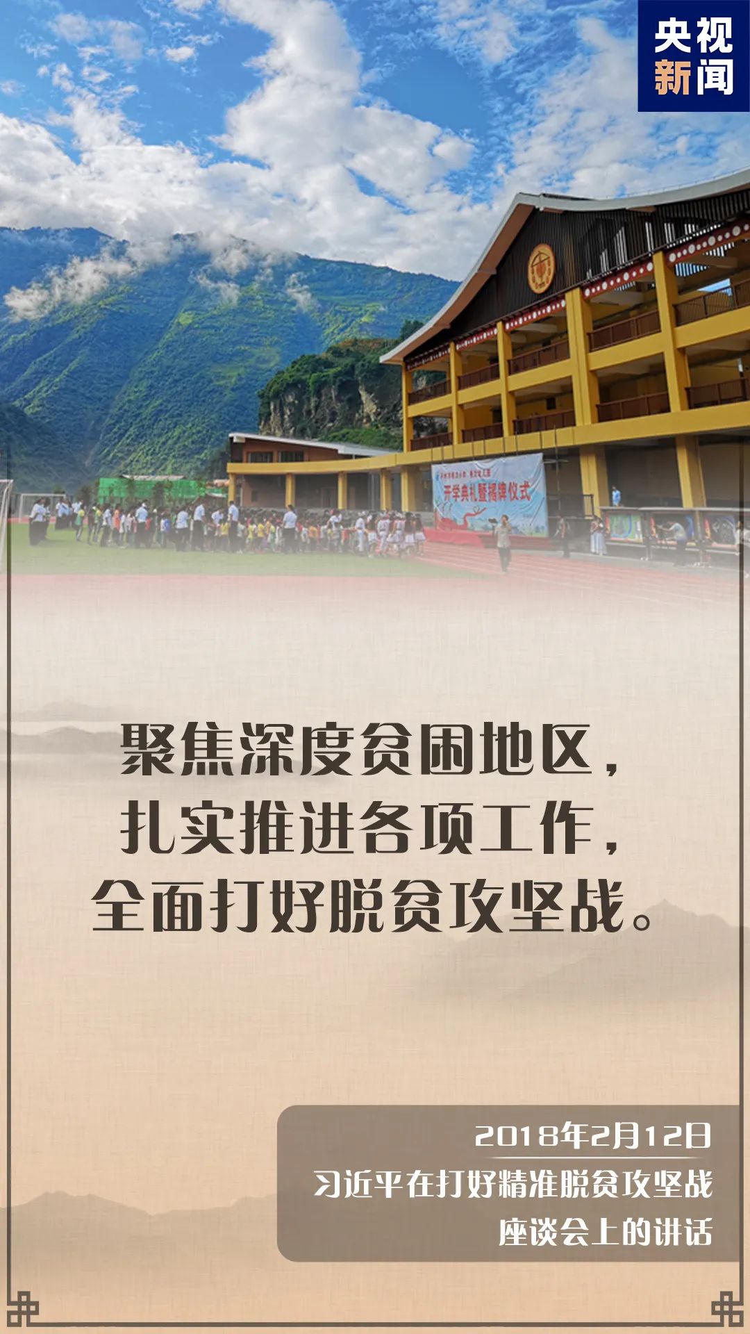 习近平指出,脱贫攻坚本来就是一场硬仗,而深度贫困地区脱贫攻坚是这场硬仗中的硬仗。我们务必深刻认识深度贫困地区如期完成脱贫攻坚任务的艰巨性、重要性、紧迫性,采取更加集中的支持、更加有效的举措、更加有力的工作,扎实推进深度贫困地区脱贫攻坚。