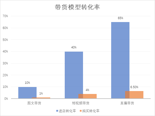 技术变革也必然会带来市场红利——据业内机构测算,仅从带货方面考量,图文带货和直播带货在进店转化率和购买转化率方面均有超过6倍的差距。