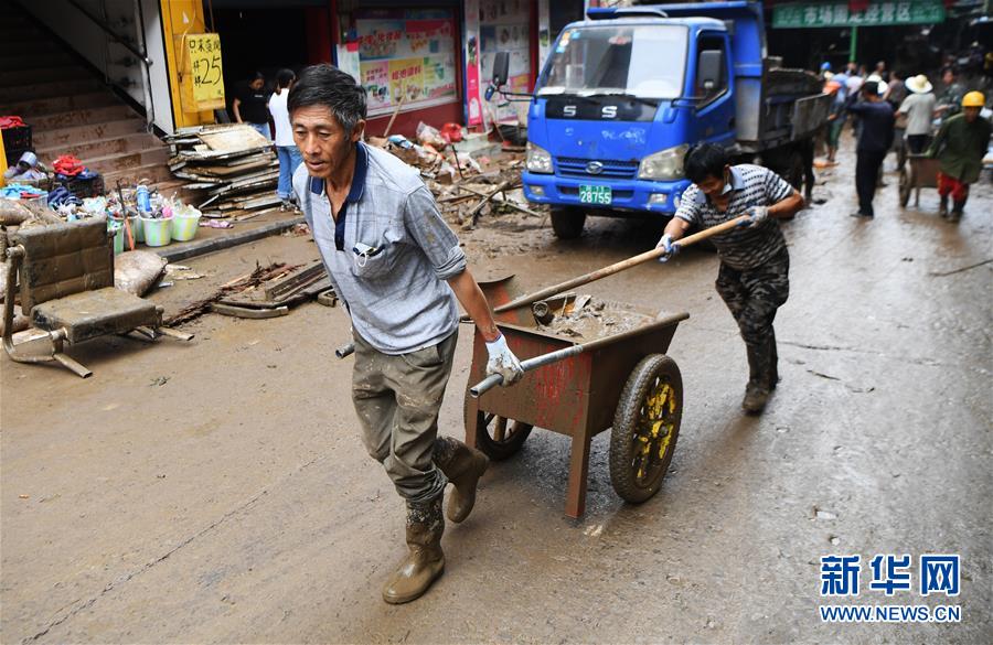 这是6月23日在重庆市綦江区赶水镇农贸市场拍摄的清淤现场。新华社记者王全超摄