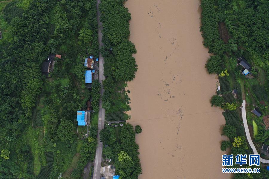 6月下旬,綦江重庆段出现80年以来最大的洪水。这是6月22日在綦江五岔水文站上空拍摄的画面(无人机照片)。新华社发(向进摄)