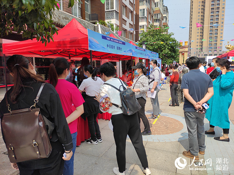 湖北省武汉市汉阳区江欣苑社区的招聘会吸引大量求职者。郭婷婷摄