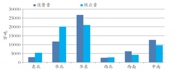 各区域钢铁企业钢材供应量与本区域钢材流入量(消费量)的对比分析