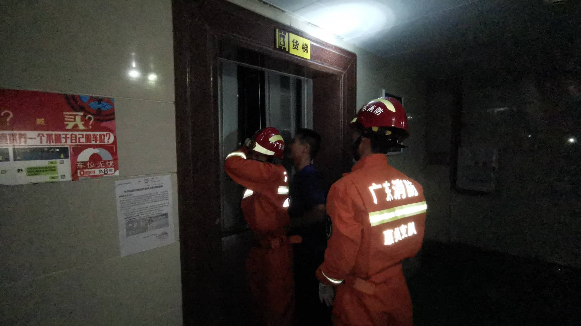 7月13日,惠州消防指挥中心接到报警称,惠城区下角江南丽苑2期水云阁有人被困电梯。接到报警后,指挥中心立即调动下角消防救援站出动1车5名指战员赶赴现场救援。