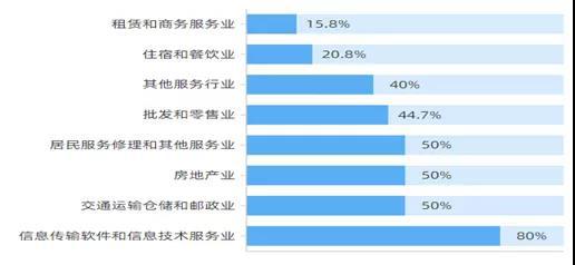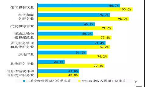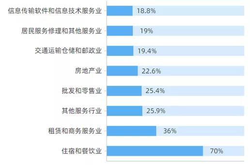 各服务行业企业上半年营业收入较去年同期下降比重各服务行业企业上半年营业收入较去年同期下降比重