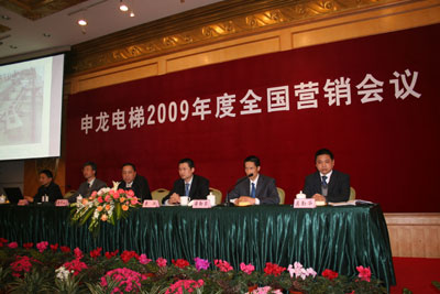 公司董事长袁华山在会上作了“把握机遇,开创申龙电梯发展新时期”的报告。董事长提出了建成“强盛、富裕的申龙大家庭,跻身于一流电梯制造商”的宏伟目标,大大鼓舞了与会人员的信心。执行总裁袁强在会上总结了08年的成绩,指出了存在的问题,布置了09年的销售任务。技术总监唐志荣、生产厂长蒋勤荣等公司领导就技术创新、设备改造、售后服务等工作向大会作汇报。获奖代表也在大会上作了热情洋溢的发言。