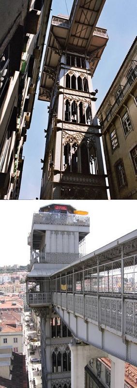 葡萄牙里斯本市的圣胡斯塔观光电梯位于该市的圣胡斯街,由Raul Mesnier de Ponsards设计。它于1900年开始动工,历时两年完成。起初是采用蒸汽动力,1907年改为电力。