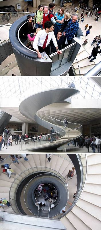 有时,像液压系统这种技术更好用,法国巴黎卢浮宫内的电梯证明了这一点。更值得一提的是,当电梯升达目的地时。会滑出人行托板,供游客步入展览场馆。