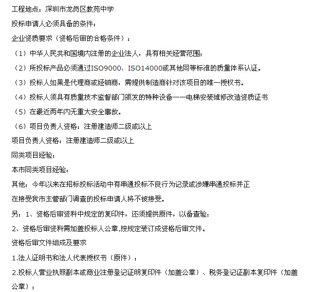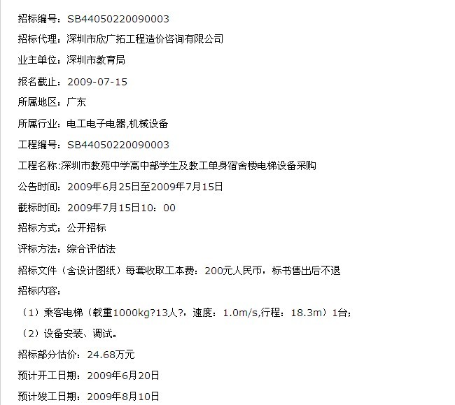 学生及教工单身宿舍楼电梯设备招标采购公告