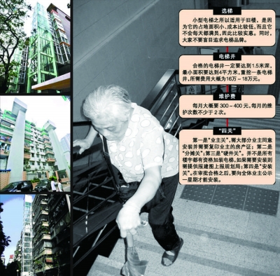 上海市电梯学会有关人士介绍,旧楼装电梯难推行,一方面是缘于原规划设计的不足,但更大阻力来自电梯的安装费用和日后的维护等相关费用,究竟由谁“埋单”,又怎么“埋单”是最大问题。
