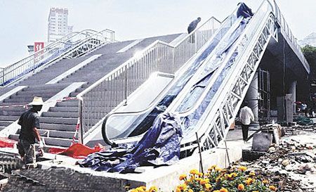 7月8日,宜昌市首座电梯过街天桥拆除围栏后露出了“尊容”。据了解,位于城区步行街与儿童公园相连的人行天桥两侧安装了4部电梯,这是该市第一座电梯过街天桥。