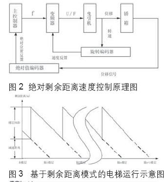 ADCM绝对剩余距离控制原则,是以绝对值编码器作为电梯轿厢绝对位置反馈的控制方法。绝对位置就是轿厢的位置是连续实时测得的实际位置,绝对剩余距离是实时的电梯轿厢至欲平层位置的距离。这是一种较为理想的电梯的速度给定方式,它根据测得的绝对剩余距离实时计算电梯运行速度, 给变频器发出速度控制指令,控制电梯的运行。图2是绝对剩余距离ADCM绝对剩余距离控制原则,是以绝对值编码器作为电梯轿厢绝对位置反馈的控制方法。绝对位置就是轿厢的位置是连续实时测得的实际位置,绝对剩余距离是实时的电梯轿厢至欲平层位置的距离。这是一种较为理想的电梯的速度给定方式,它根据测得的绝对剩余距离实时计算电梯运行速度, 给变频器发出速度控制指令,控制电梯的运行。图2是绝对剩余距离为原则的电梯系统原理图。在电梯平层时,系统根据电梯的实时位置值计算出剩余距离,在足够短的距离内给出减速信号,并给出相应的速度,达到减速点到平层位置速度的平滑过渡。系统依据绝对值编码器直接获得的轿厢位置反馈给电梯主控制器的同时,又把电梯速度反馈给变频器,以便系统依据电梯的实时速度来调节系统的给出速度,提高电梯速度控制的实时性。通过以上措施,系统形成了电梯速度双闭环控制,实现依据电梯的准确位置控制电梯的运行速度,消除电梯的制停停靠时的爬行停靠。它较好的解决了电梯平层停靠时的爬行停靠问题,同时实现了电梯的直接平层,提高了平层精度。