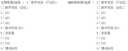 MD320变频器在频率源的组合方面灵活多样。主、辅频率源分别可由10种选择,而且还可以实现主/辅、主/主+辅、主+辅等频率切换方式。