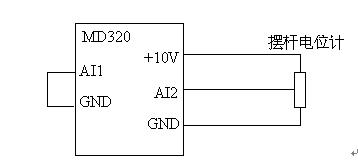 针对动力放线架对变频器的要求,汇川MD320在频率源选择选为 主+辅,主频率为0,辅助频率为PID时的组合下,可以实现PID的双向正反转控制。具体接线图及主要参数如下: