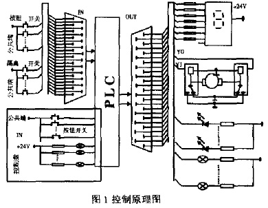 PLC通过程序控制电梯的运行.其中外呼按钮、轿厢内选层按钮和各层限位开关为PLC的输八,继电器动作和指示灯为PLC的输出,电机由继电器控制。